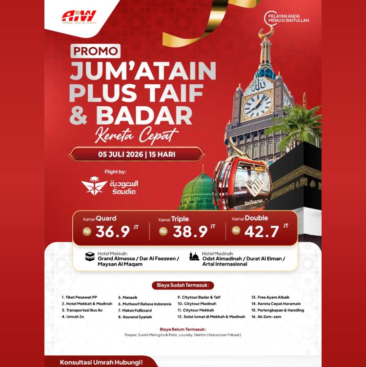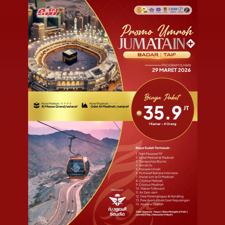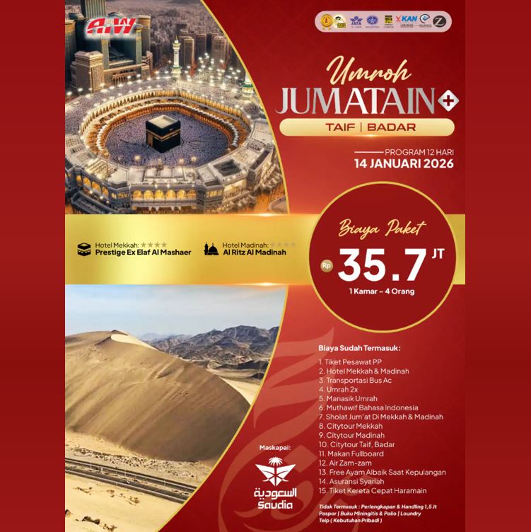 UMROH PROMO JUM'ATAIN BADAR TAIF 35,9 JUTA ALL IN 15 HARI MARET 2026