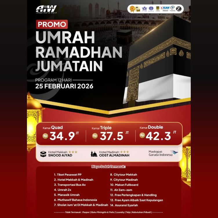 UMROH PROMO RAMADHAN JUM'ATAIN 34,9 JUTA ALL IN 12 HARI FEBRUARI 2026