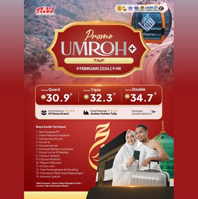 PROMO UMROH TAIF 30,9 JUTA ALL IN 9 HARI FEBRUARI 2026