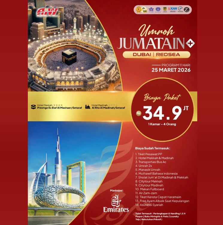 UMROH JUM'ATAIN DUBAI REDSEA 34,9 JUTA 11 HARI MARET 2026