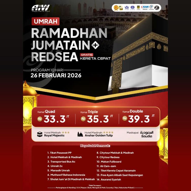 UMROH RAMADHAN JUM'ATAIN REDSEA KERETA CEPAT 33,3 JUTA 10 HARI FEBRUARI 2026