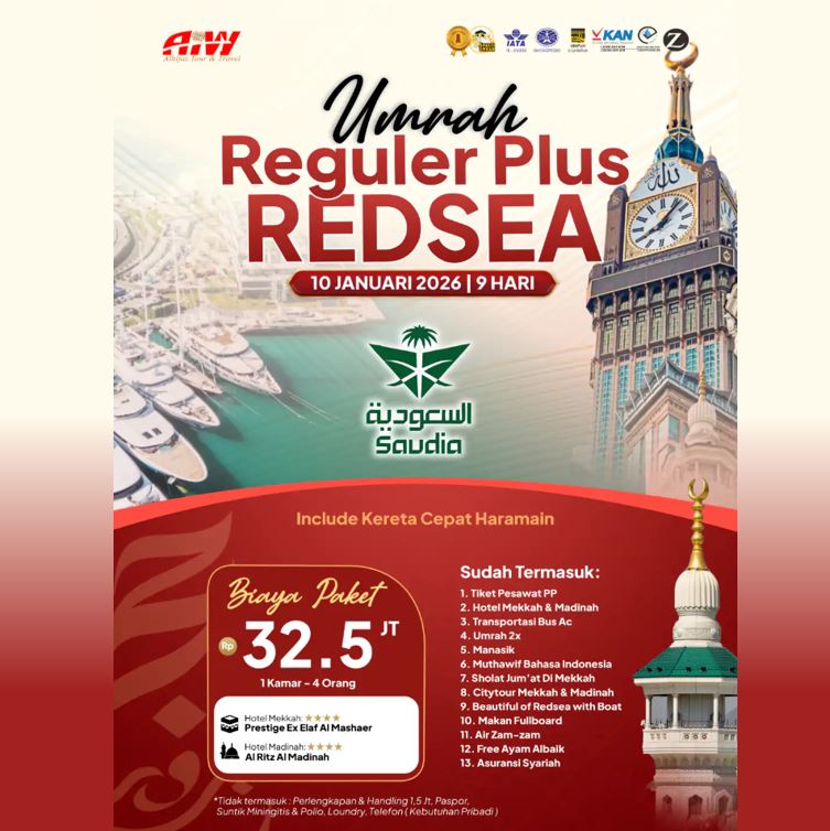 UMROH REGULER REDSEA KERETA CEPAT 32,5 JUTA 9 HARI JANUARI 2026