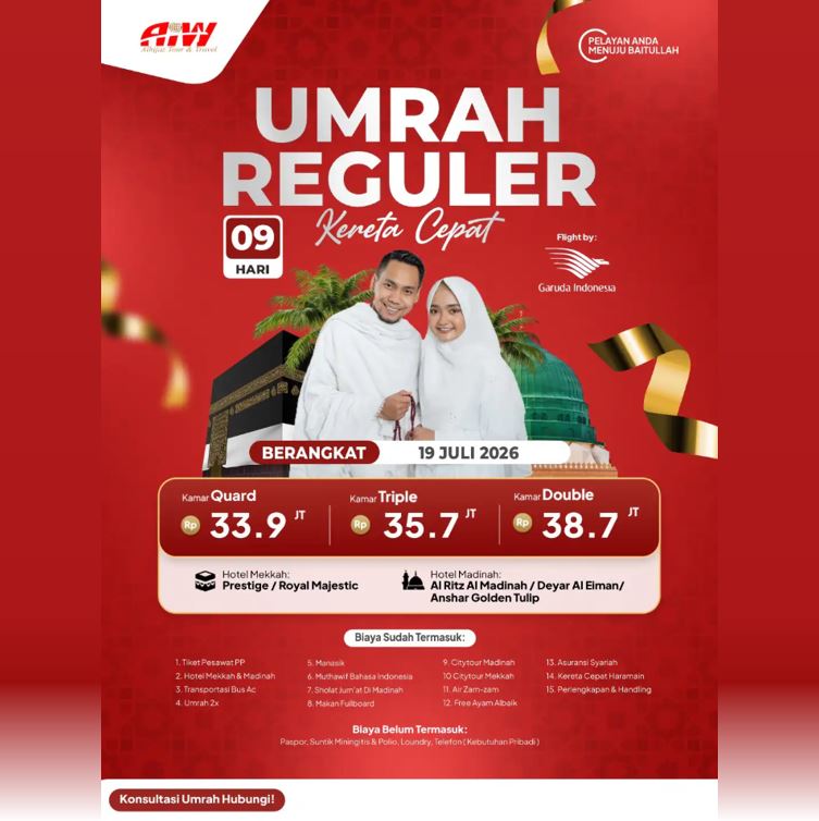 UMROH REGULER KERETA CEPAT 9 HARI 33,9 JUTA ALL IN AGUSTUS 2026