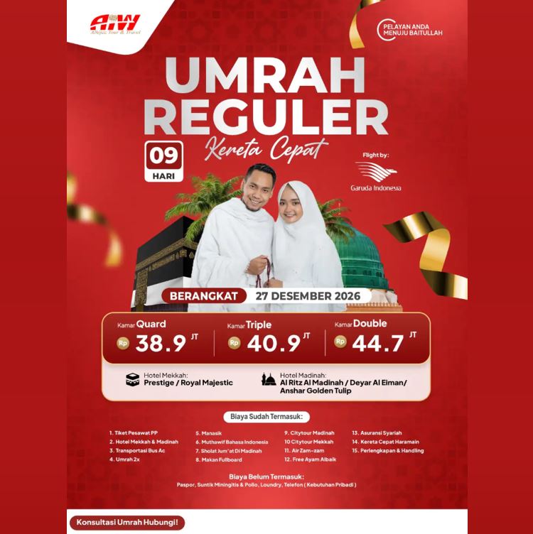 UMROH REGULER KERETA CEPAT 38,9 JUTA ALL IN 9 HARI DESEMBER 2026